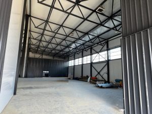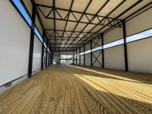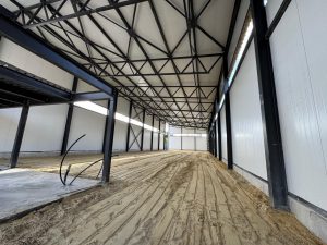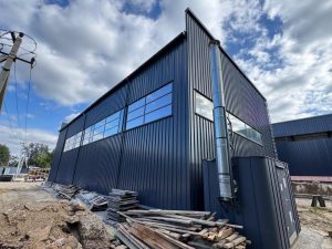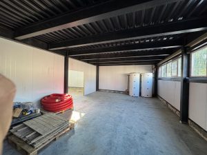 - Конструкция: Каркас ЛМК, двускатная кровля из сэндвич-панелей 150 мм.
