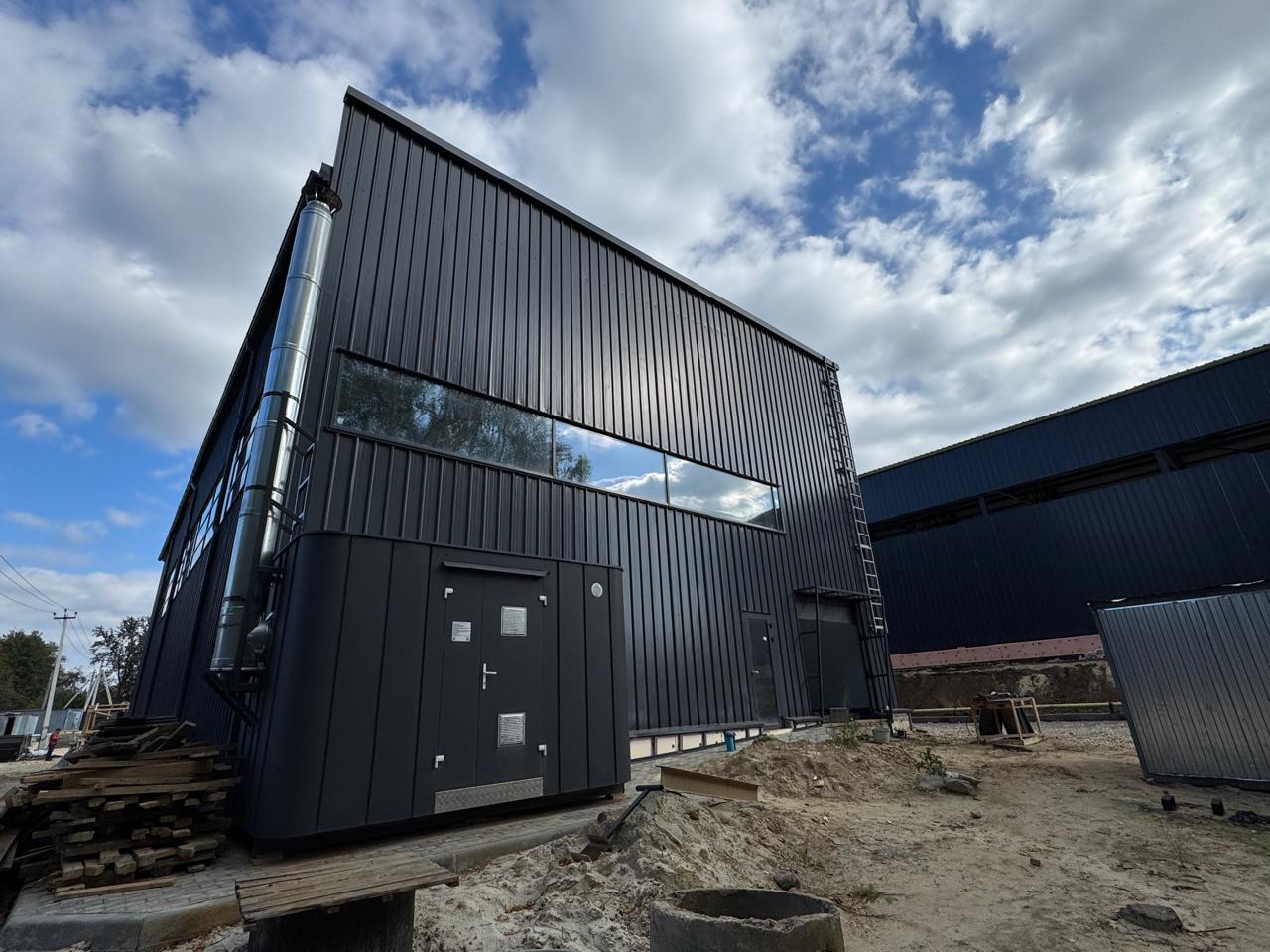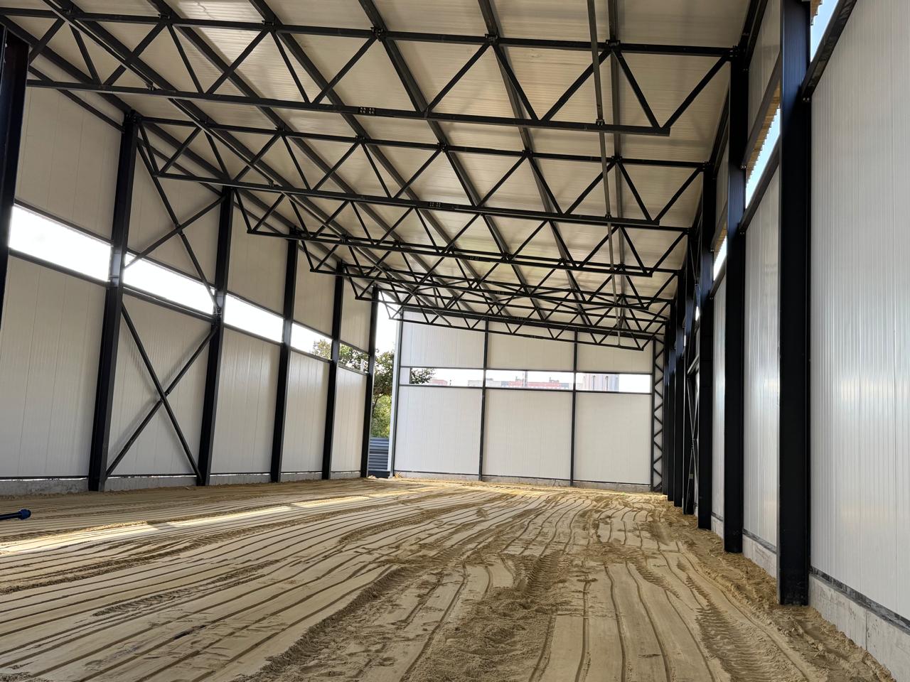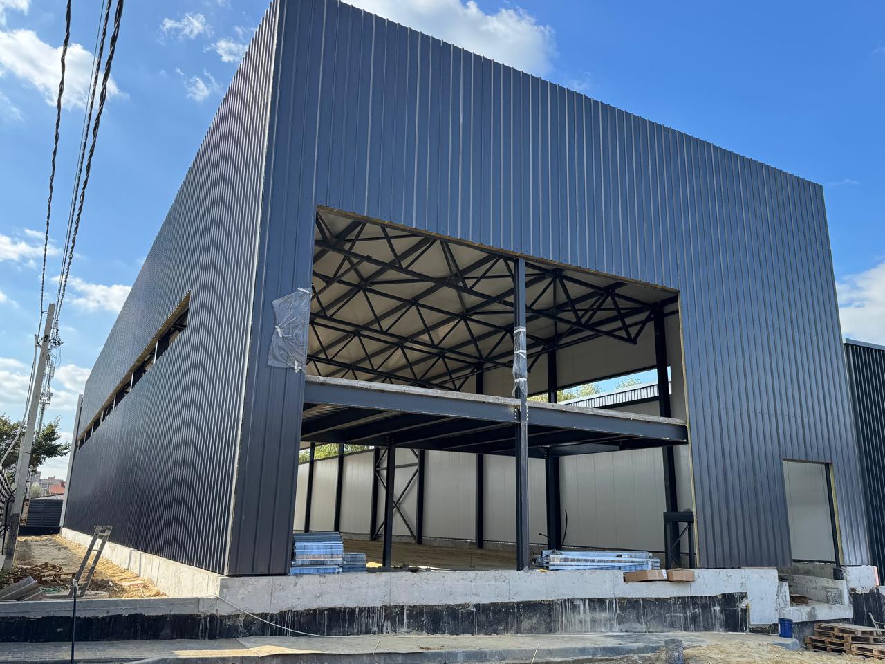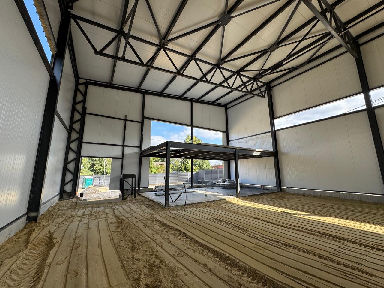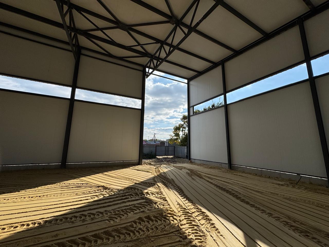 - Конструкция: Каркас ЛМК, двускатная кровля из сэндвич-панелей 150 мм.