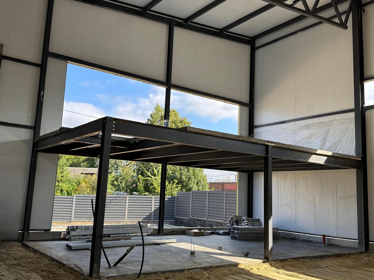 - Конструкция: Каркас ЛМК, односкатная кровля из сэндвич-панелей 150 мм.